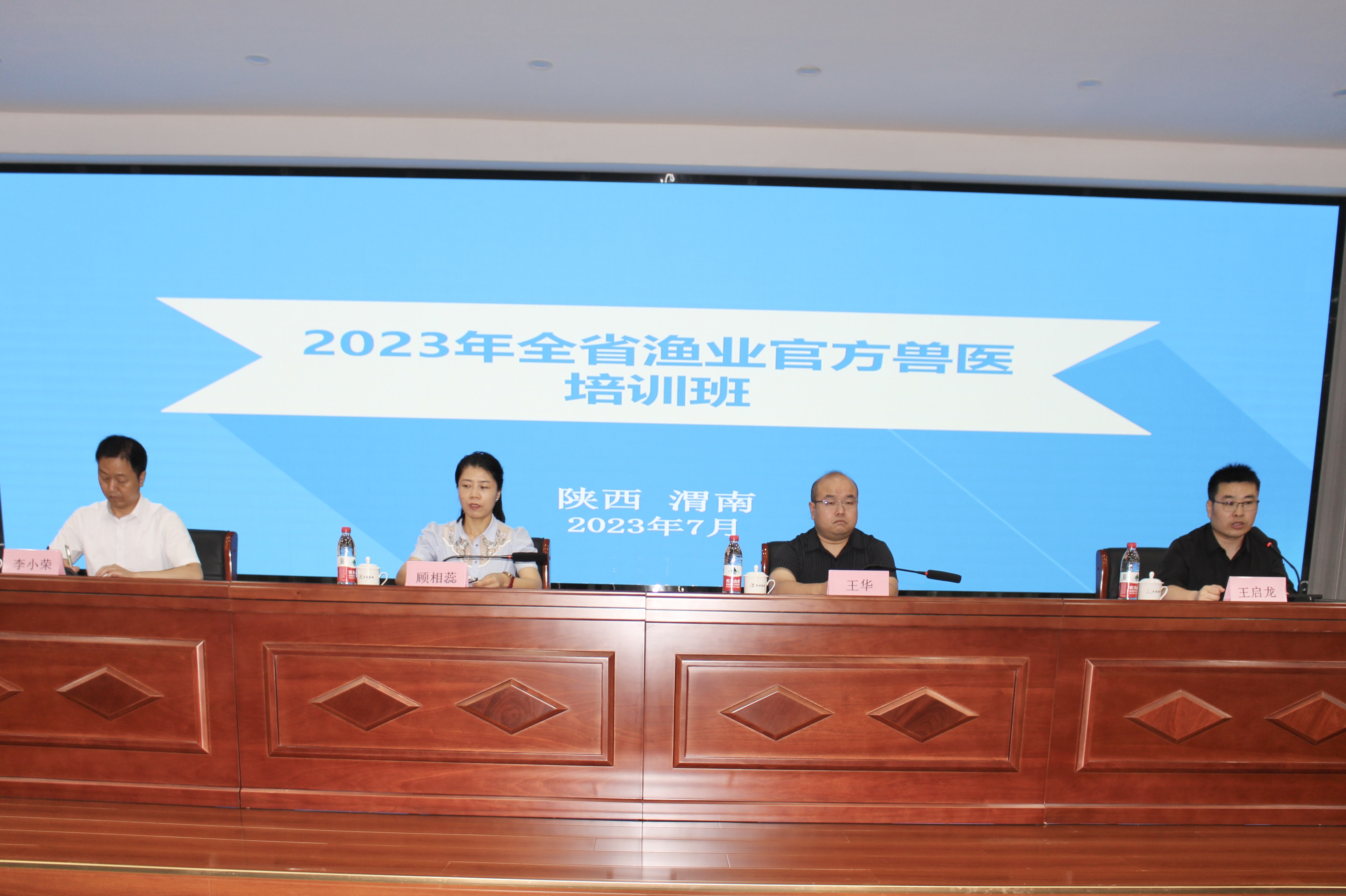 省農(nóng)業(yè)農(nóng)村廳漁業(yè)漁政局、省水產(chǎn)研究與技術(shù)推廣總站,渭南市農(nóng)業(yè)農(nóng)村局、市畜牧漁業(yè)發(fā)展中心,各地農(nóng)業(yè)農(nóng)村局負(fù)責(zé)同志以及全省第二批認(rèn)定的漁業(yè)官方獸醫(yī)總計(jì)200余人參加。